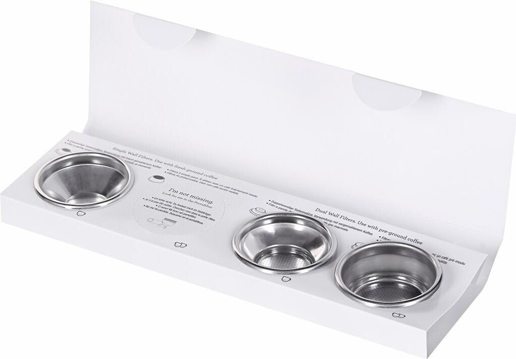 • محتویات بسته: دستگاه اسپرسو ساز، آسیاب داخلی بهبود یافته، فیلتر قهوه، دفترچه راهنما، ابزار تمیزکاری