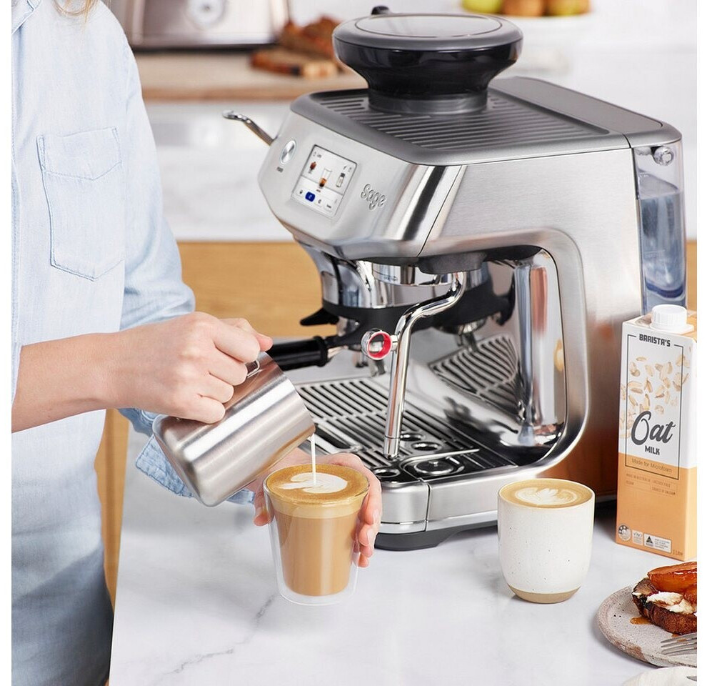 Sage SES882 The Barista Touch Impress دستگاهی پیشرفته با صفحه نمایش لمسی برای تهیه آسان اسپرسو و نوشیدنیهای قهوهای است. آسیاب داخلی و سیستم بخار قدرتمند از ویژگیهای برجسته آن میباشد.